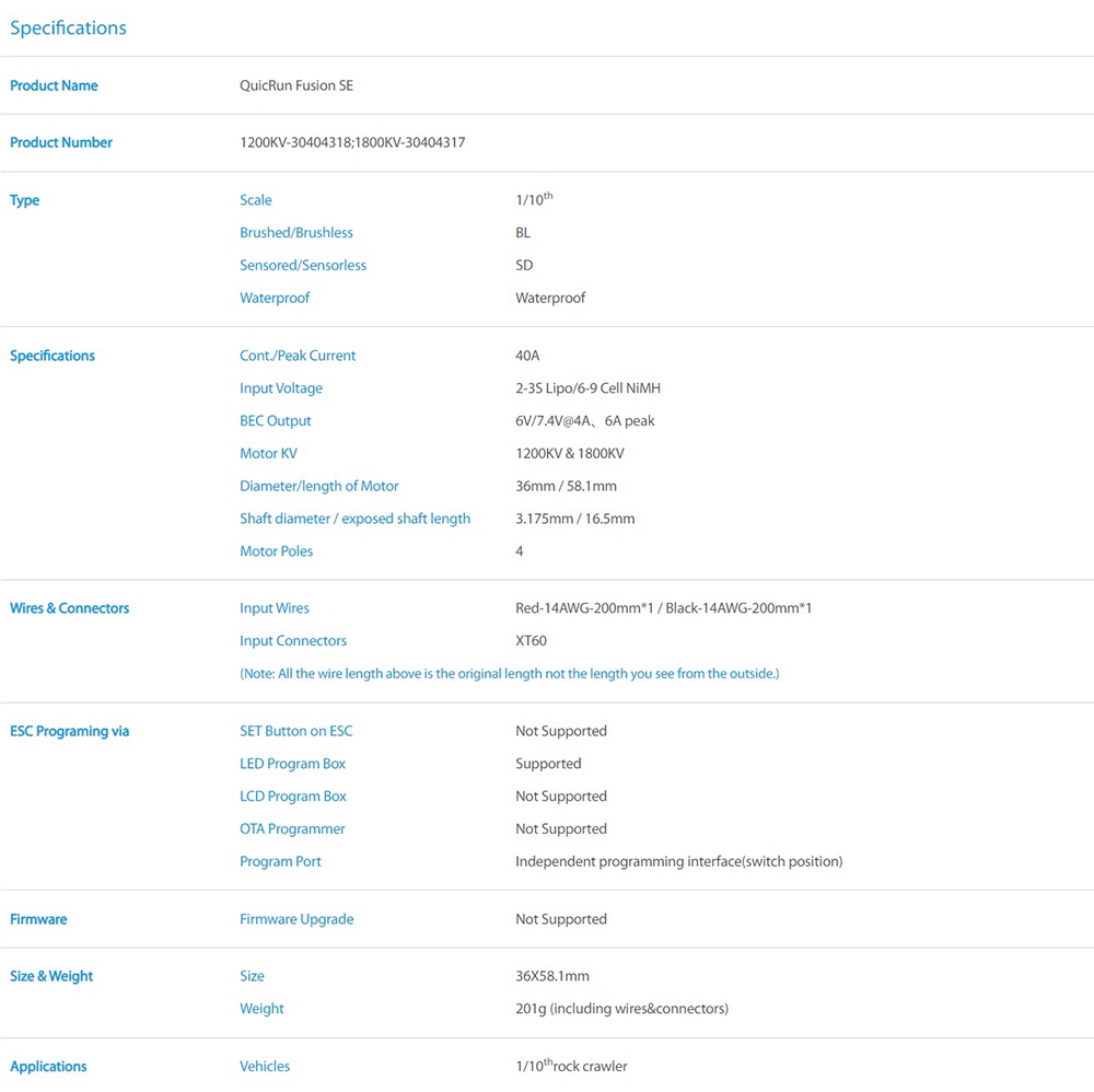 System For Crawler Quic Run Fusion SE -ESC 40 -Motor Brushless 540 KV 1800 |